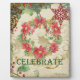 COLOR PALETTE: Tan, cream, green, red and gold. DESIGN COLLECTION: This is an original art design from Audrey Jeanne Roberts, made from hand painted water colour images of a beautiful hand painted poinsettia Christmas wreath, holly berry garland, holly branches with leaves, pine cones, leaf swirls, red modern snowflakes and word art. This design has an inspirational sentiment that says, "Celebrate" and has green swirls accenting the text with a golden "glitter" effect. Perfect for Christmas decor as you can easily and safely pack them away after the holidays! Available in 3 versions: a non-personalised, a personalised version with your family name (or to personalise for a gift for another family) and as a photo frame to display your family photo. Use all 4 designs to display 4 different family photos over the years on your fireplace mantel!