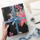 This New Year Holidays wrapping paper with a pattern of pink wild berries and lush pink flowers combined with green christmas tree branches acorns on the black background is perfect for your gifts. Enjoy it.