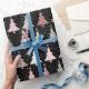 Christmas Tree Pink & Green with Black Background Wrapping Paper