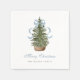 Add a charming touch to your holiday gifts with these personalized napkins featuring a delightful watercolor festive green Christmas tree, adorned with a beautiful blue bow.