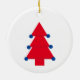 Change up your Christmas wishes with this modern Christmas design. Still using the traditional seasonal colours this design uses red white and blue. The red tree has decorations hanging of it.