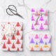 Christmas Tree Red Pink Blue Pattern Design Wrapping Paper Sheet