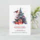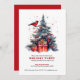 Modern watercolors decorated Christmas tree, Red Robin, customisable Holiday party invitation.