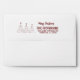 White envelope for your Christmas holiday season cards featuring 3 red trees , your family name and address in simple modern red typography.