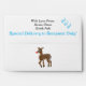 With Love from Santa Claus. Fun Santa's Official Sleigh Express Mail Emblem Seal faux address, with Christmas tree and ornaments in pink, gold, blue, red. If you'll be sending Santa's personalised letter to a child before Dec. 01, simply edit the text box to type in a Nov. 01 date. Send kids of all ages a Personalised Letter from Santa and add a final touch by inserting your Christmas Letters made from Magnetic Letters, Letterhead or Cards with these red linen paper A7 Envelopes sent from Santa himself. A pretty decorated Christmas tree, and jolly Santa Claus is on the front. Cute Super Snow the blue-eyed reindeer with his red blue nose is on the back from Santa at the North Pole. The letter(s) will be shipped to ordering customer, when Christmas time approaches simply add a mailing stamp to the custom Santa envelopes (with Personalised Magnetic Santa Letter) and drop in mailbox at your convenience to have letter from Santa delivered to the child or children. Be sure to give yourself enough time for the letter to arrive in time to enjoy BEFORE Christmas! Don't have enough time to mail your special envelope and letter from Santa to your loved ones? Simply insert letter into envelope and put inside Christmas Stocking and add festive stickers, or at local store buy large festive shiny envelopes to insert letter and put name label and stickers on outside with special word search puzzles, stickers, crayons, reindeer food packet, etc. inside. Original Artwork Design © TamiraZDesigns.