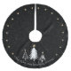 Christmas Tree Skirt with Gold Stars, designed with a cluster of White Christmas Trees topped with gold coloured stars on a black background. The text includes: the stars are brightly shining.