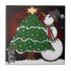 Christmas Tree Snowman Surprise Art Print Ceramic Tile