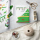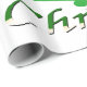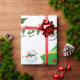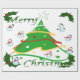 This design features a green christmas tree with red, gold and white ribbon and Christmas balls decorating the tree. Snowmen and holly decorate this design. "Merry Christmas" is printed on this design in green and white. This wrapping paper is available in assorted styles and coloured backrounds and borders.
