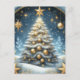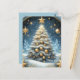 Christmas tree starry night, blues and gold design postcard