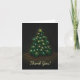 This elegant thank-you card features a softly illuminated Christmas tree adorned with glowing multicolored lights. Set against a rich, dark background, the warm golden "Thank You!" text conveys gratitude and holiday cheer.