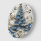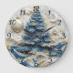 A beautifully crafted Christmas tree adorned with sparkling ornaments and delicate decorations. An enchanting design captures the festive spirit, with a soft white and blue colour palette enhancing the elegance of the season.