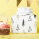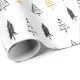 Wrap your gifts in a chic, simple style with this Christmas Tree Variety White with black and gold wrapping paper. Features Christmas trees of several different styles.