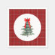 Christmas Eve party napkins with Christmas tree and red bow and plaid.