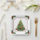 A beautiful Christmas paper plate featuring a colourful Christmas tree with holly accents. Great for your restaurant holiday table or holiday barroom food.