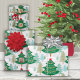 Winter woodland wrapping paper sheets with a Christmas tree as the focus. A red star tops off the Christmas tree and each sheet comes with a different treatment of the tree decorations. The first can be of your personal photo, the second tree has a customisable red monogram, and the third is typography of "Happy Holidays" and a place to add your family name.