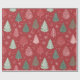 This festive roll of wrapping paper features a charming array of illustrated Christmas trees, each drawn in a clean, minimalist style without any decorations. Set against a vibrant red background, the trees stand out with their simple silhouettes and graceful lines, offering a modern twist on a classic holiday motif.