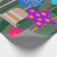 This wrapping paper has a design that looks like ornaments in red, green, blue, pink, gold, silver, and white on a Christmas tree.