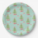 Christmas Trees 9" paper plates in colours of aqua, green, pink, and red