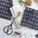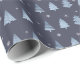 This gift wrap features a subtle pattern of stylised Christmas trees and snowflakes in shades of sky blue and slate on a navy blue background. Search ID861 thru ID864 to see additional colour options and other products in this modern, Christmas design set.