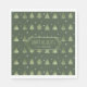 This paper napkin features a pattern of stylized Christmas trees and snowflakes in light green on a darker moss green background. Optional 'Happy Holidays' text and a label have been provided to add your name and/or other text. Search ID861 thru ID864 to see additional color options and other products in this modern, Christmas design set.