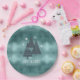 This paper plate features a beautiful arrangement of stylized Christmas trees and snowflakes in deep teal on a textured-effect background in shades of watchet blue. Optional 'Happy Holidays' text and a template have been provided to add your name and/or other text. Search ID861 thru ID864 to see additional color options and other products in this modern, Christmas design set..