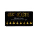 This label design features a beautiful border of stylised Christmas trees and snowflakes with a textured-effect in shades of gold on a black background. Optional 'Happy Holidays' text and a template have been provided to add your name and address. Search ID861 thru ID864 to see additional colour options and other products in this modern, Christmas design set.