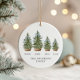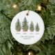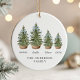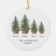 Add a charming touch to your holiday with this personalized ornament featuring a delightful watercolor festive green Christmas tree for each family member adorned with a beautiful blue bow.