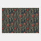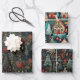 Set of 3 different Christmas themed designs with different shades of green and red Christmas fir trees, red and white baubles with decorations and snowflakes adorn this wrapping paper set. They are a 3d designs,the houses, trees, baubles and snowflakes appear to be a craft design that has been handmade and painted. Lovely for both adults and children.