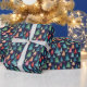 Add charm and cheer to your Christmas gifts with this elegant festive wrapping paper. Patterned with red, orange, and green Christmas trees in a watercolor style, on a dark blue background, the gift wrap makes a colourful addition to your seasonal supplies.
