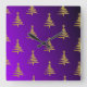 Christmas Trees Gold on Purple Square Wall Clock