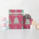 Handmade collage of Christmas Trees cut out of tissue paper on butcher paper background.