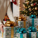 Christmas Trees & Ornaments Hand-drawn On Silver Wrapping Paper