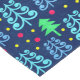 Green, blue and turquoise decorative Christmas trees with yellow and red snow on a dark blue background.