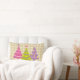 On a background of a beige chequered pattern, this pretty pillow design features pink, purple, and green Christmas trees.