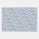 Merry Christmas, trees and polka dots dusty blue holiday Wrapping Paper Sheets. The first sheet features white winter trees on dusty blue background. The second showcases the text :"Merry Christmas" in bold typography and the third displays polka dots-snow. Personalise it with your text. Please note that if your text takes more or less space customise it to increase or decrease the text size accordingly.