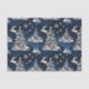 Tissue Paper in a festive Christmas-themed toile pattern of Christmas trees, reindeer and snowflakes, against a dark blue, starry background