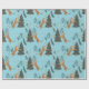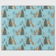 Christmas trees & tigers pattern Blue background Wrapping Paper