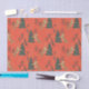 This colourful cartoon-style Christmas tree pattern has a customisable orange background.