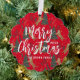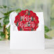 This colourful cartoon-style Christmas tree pattern has a customisable red background.