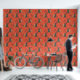 This colourful cartoon-style Christmas tree pattern has a customisable orange background.