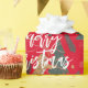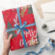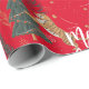 This colourful cartoon-style Christmas tree pattern has a customisable red background.