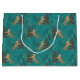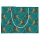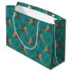 Christmas trees & tigers pattern on turquoise large gift bag
