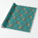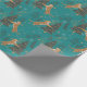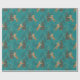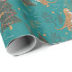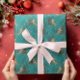 Christmas trees & tigers pattern on turquoise wrapping paper