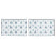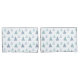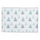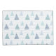 Christmas trees with beaded garland for a festive winter season. Serene and minimalist pattern featuring a spruce tree forest under snow with subtle dotted lines. A repeating motif of snowy pine trees creates a tranquil forest scene across the surface. The simplicity of the tree silhouettes contributes to the overall calming aesthetic. Delicate dotted lines interspersed among the trees.