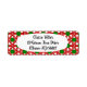 These return address labels have a geometric design of repeating red and deep red triangles with green circles on top on a field of off-white. Want the same design in different colours? Message me.