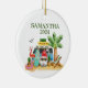 Christmas Tropical Beach Santa Flamingo Ocean Ceramic Ornament
