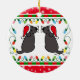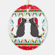 Two Black Labradors Christmas Ornament. Whimsy and cute Labrador Retriever Cartoon created by Naomi Ochiai from Japan. Great fun gifts for dog lovers who love Black Labradors. :) Adorable Black Labradors are looking back with Santa Hats and Mustaches!