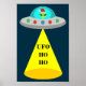 Christmas UFO Ho Ho Alien flying saucer Poster