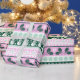 This Christmas wrapping design is a faux knit design inspired by ugly Christmas sweaters, it features holly and berries, snowmen, bows and snowflakes in a colour palette of pink, mint green, dark green and white. See the whole matching collection.