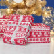 This Christmas wrapping design is a faux knit design inspired by ugly Christmas sweaters, it features holly and berries, snowmen, bows and snowflakes in a colour palette of red and white. See the whole matching collection.